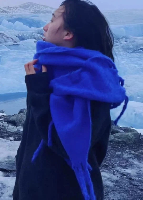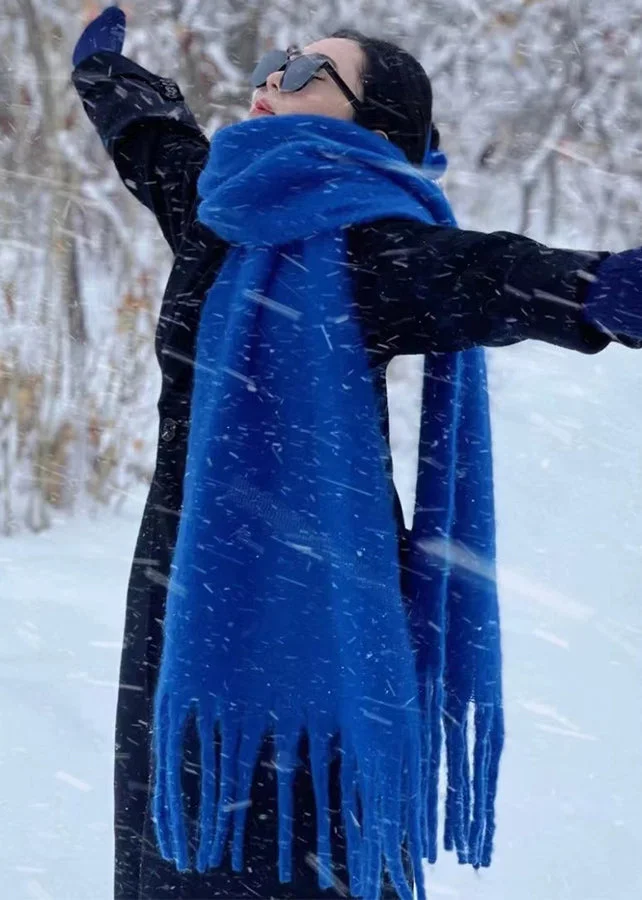 + Free ShippingChic Blue Tasseled Thick Warm Faux Cashmere Shawl