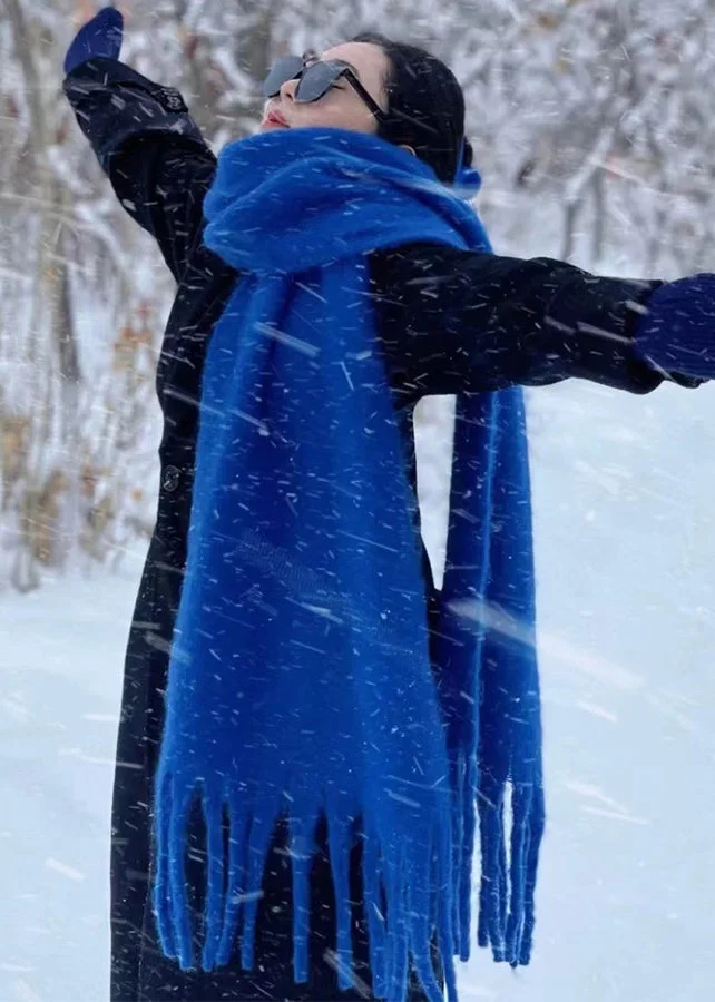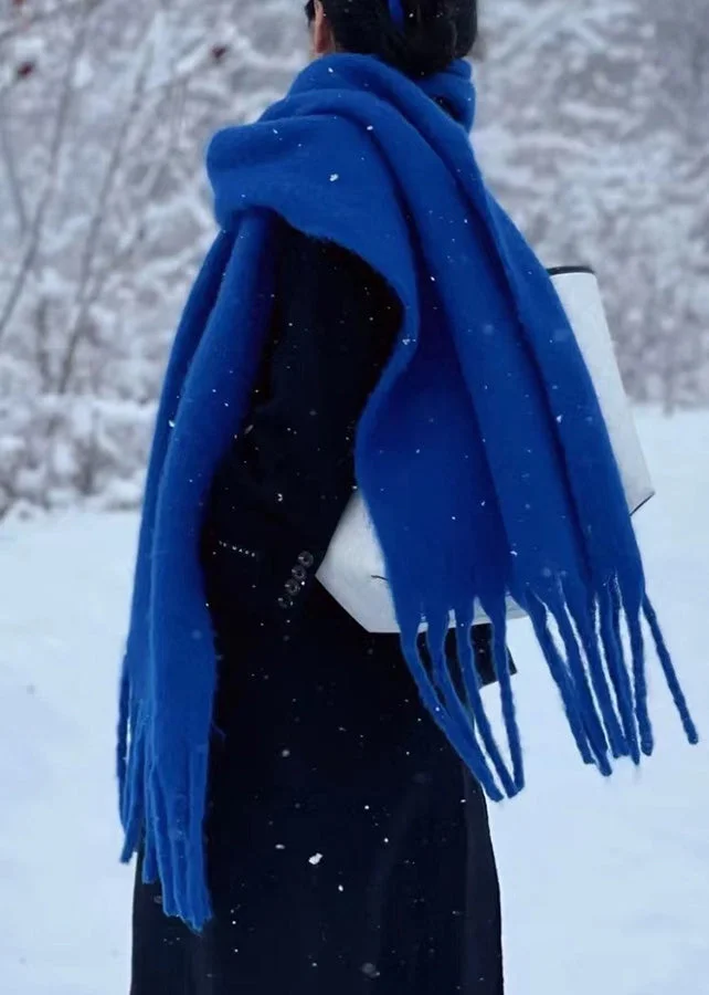 Chic Blue Tasseled Thick Warm Faux Cashmere Shawl