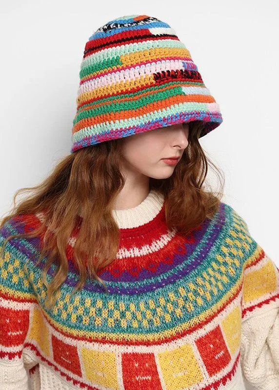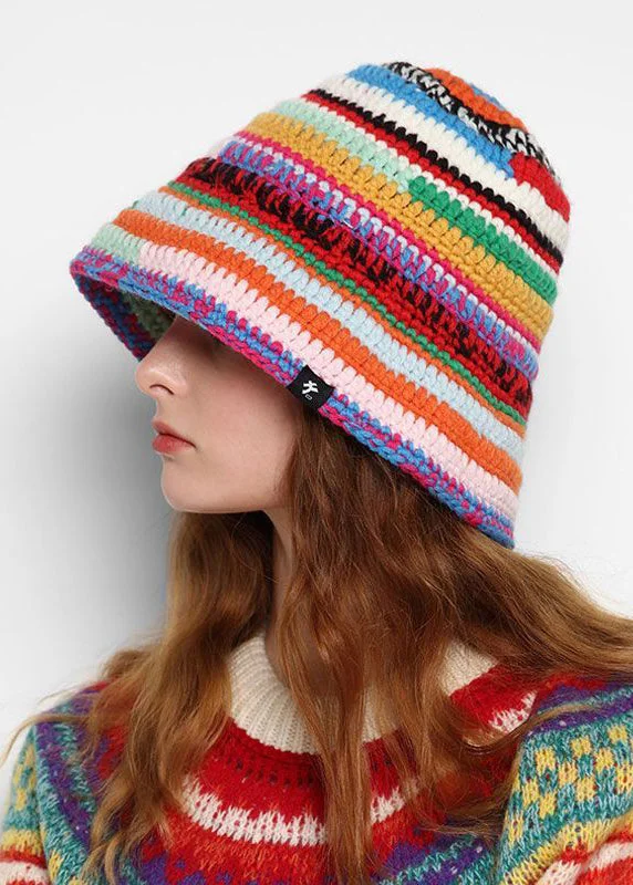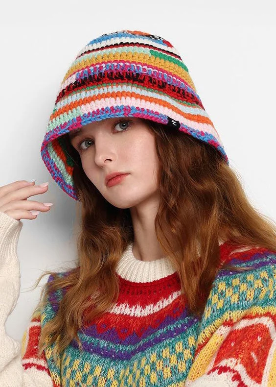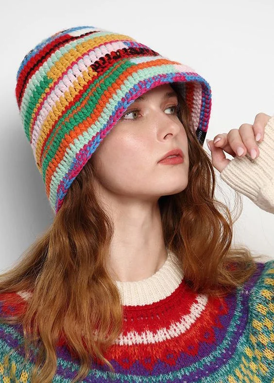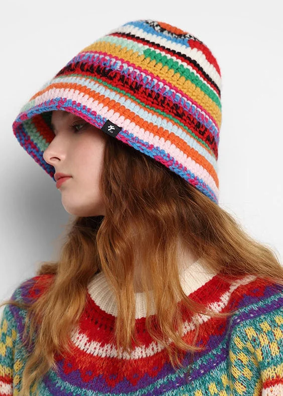 Chic Rainbow Striped Oversized Knit Bucket Hat