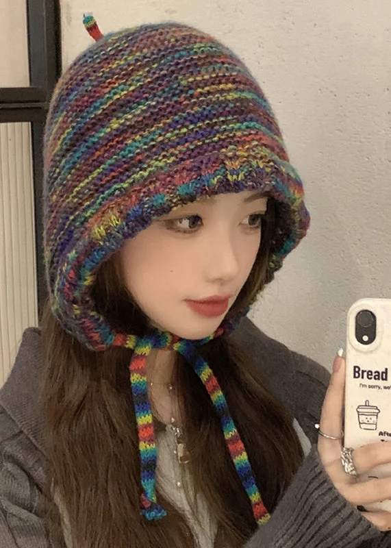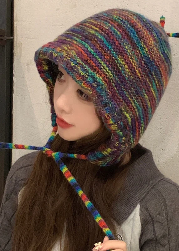 Classy Rainbow Tassel Thick Cotton Knit Bonnie Hat
