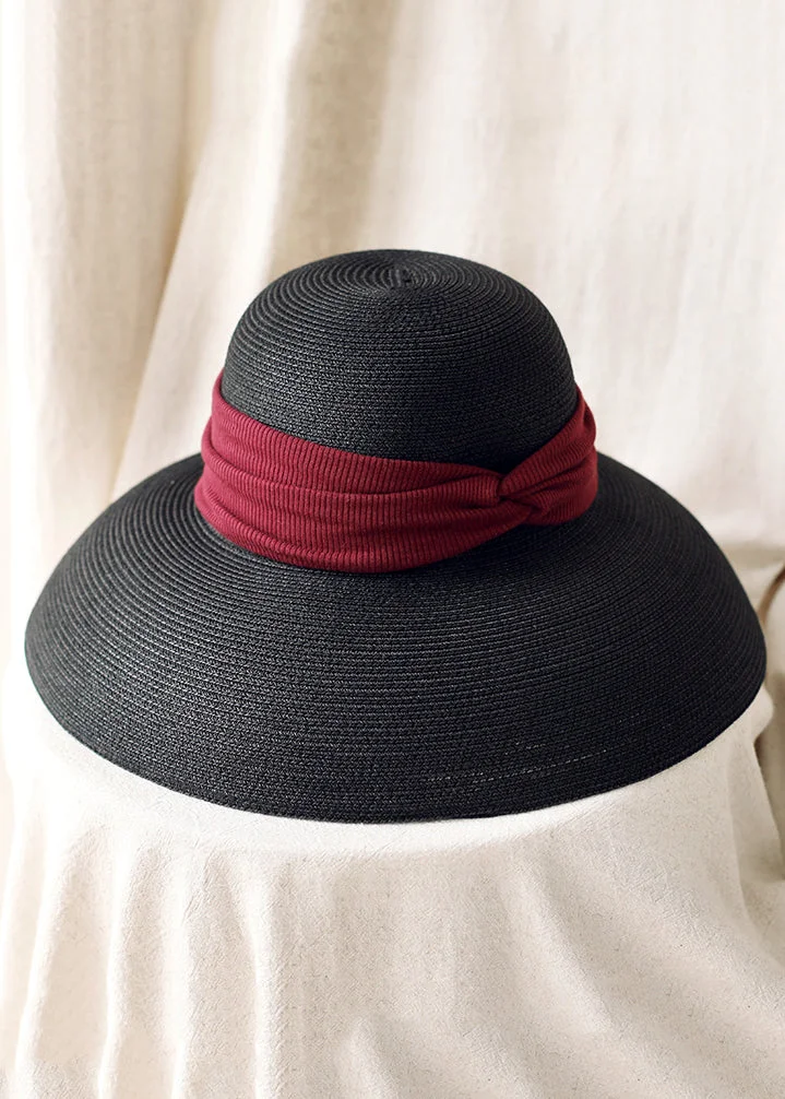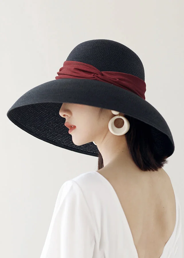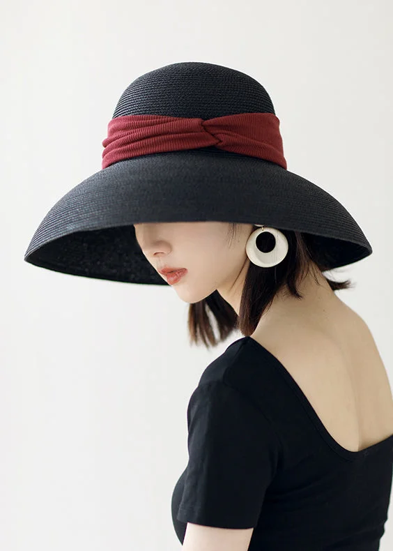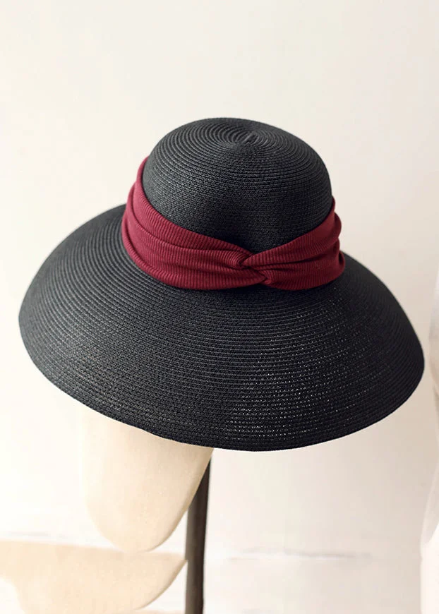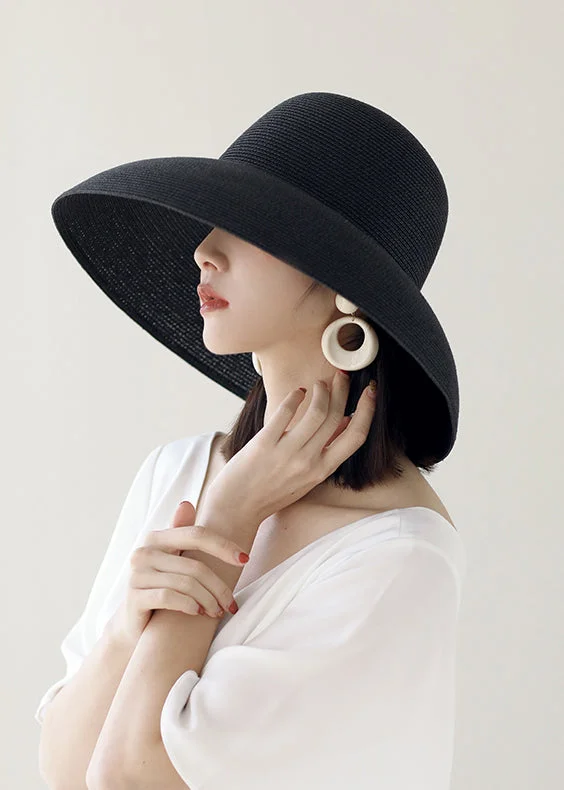 Elegant Black Straw Woven Beach Holiday Floppy Sun Hat