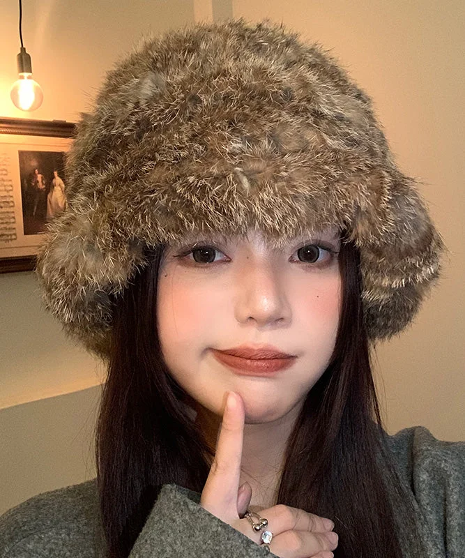 + Free ShippingFashion Brown Thick Warm Fuzzy Fur Fluffy Bonnie Hat