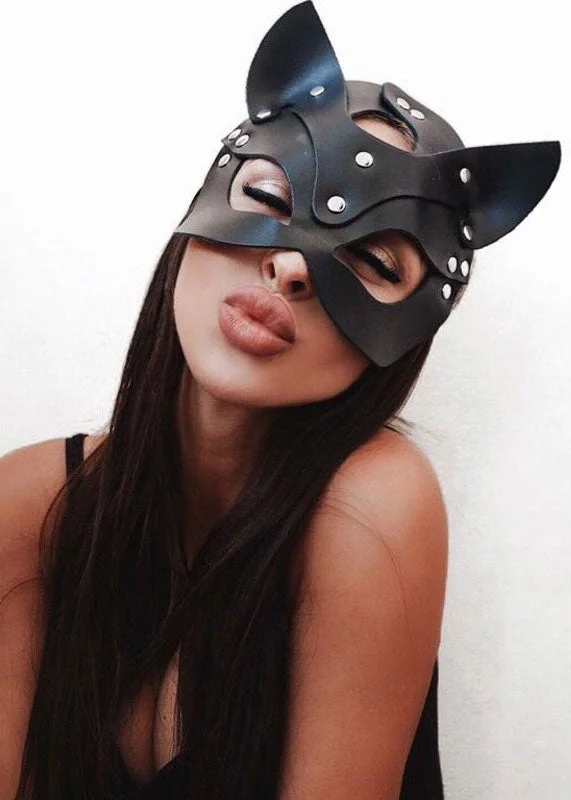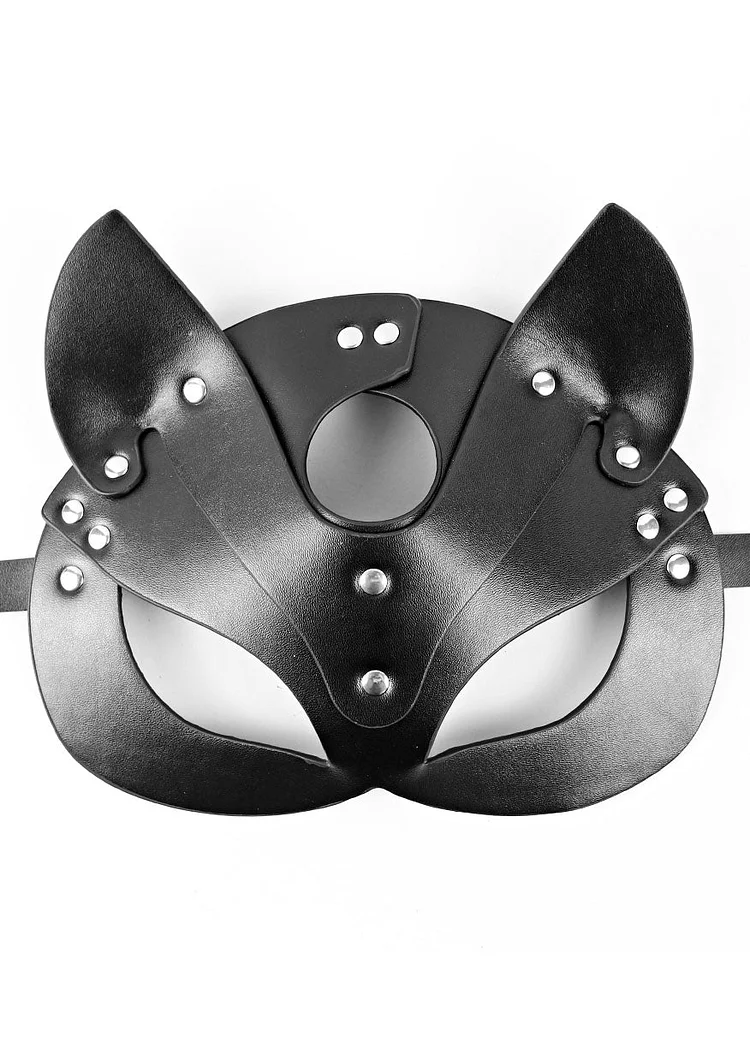 Harness Mask Black Half Eyes Cosplay Face Nail Bead Faux Leather Cat Leather